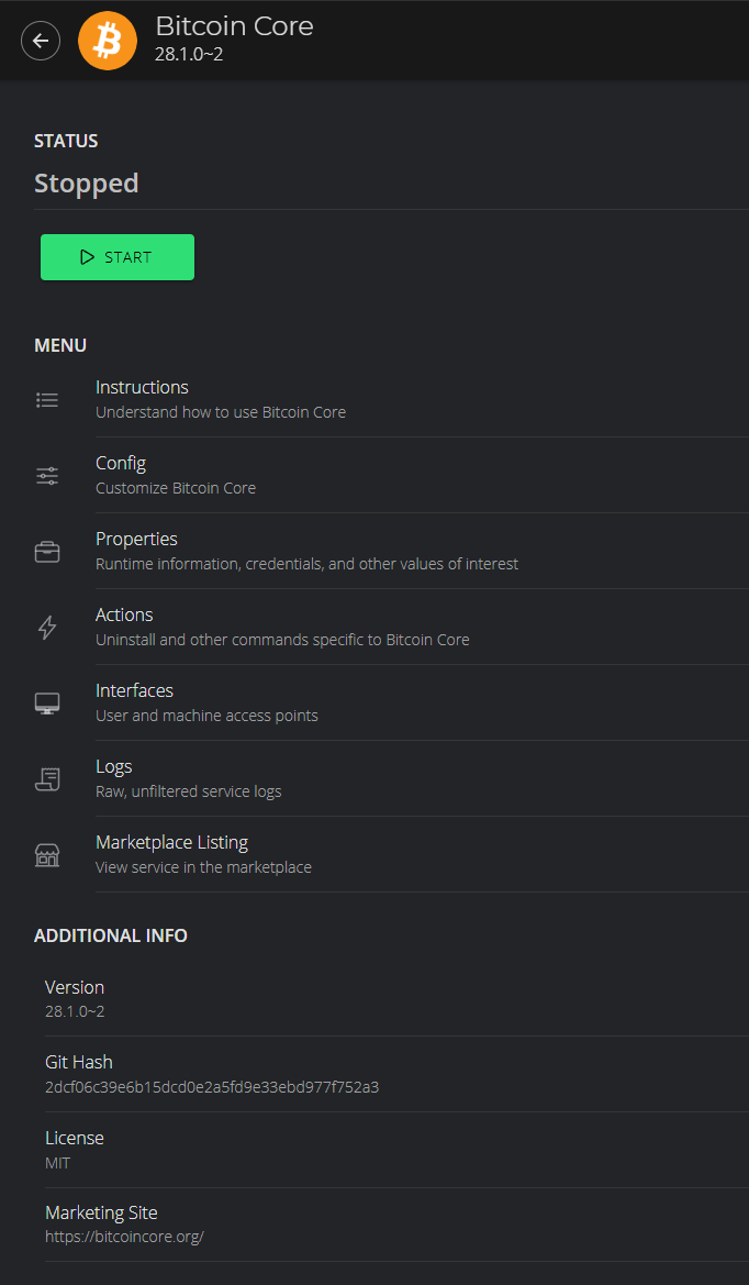 No it doesn’t work like that. You’re running one or the other. The confusion stems from the fact that StartOS currently sees them as the same service. Please click on your installed Bitcoin service, and post a screenshot.